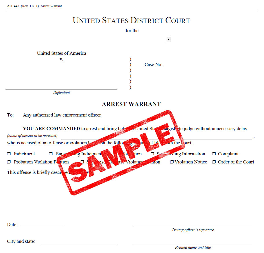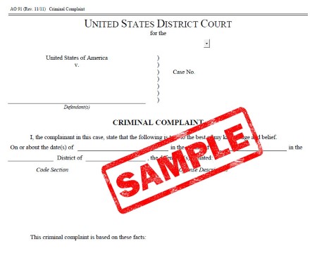 • Below are samples of a federal arrest warrant and a typical criminal complaint (used to charge an individual with violation of a crime), but it is important to note that scammers can easily reproduce a document which looks similar.